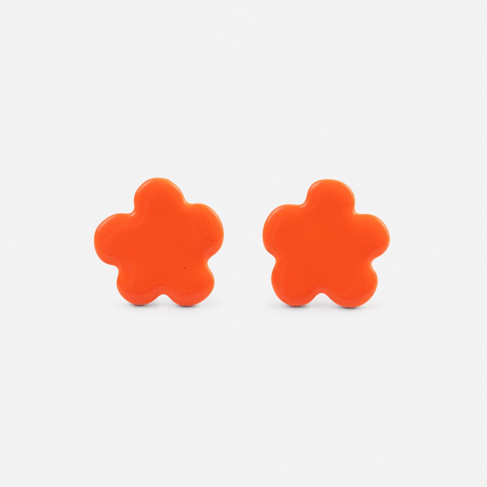 Radiant Orange hand-dipped polyester powder coated steel earrings with surgical stainless steel posts and sterling silver backings.