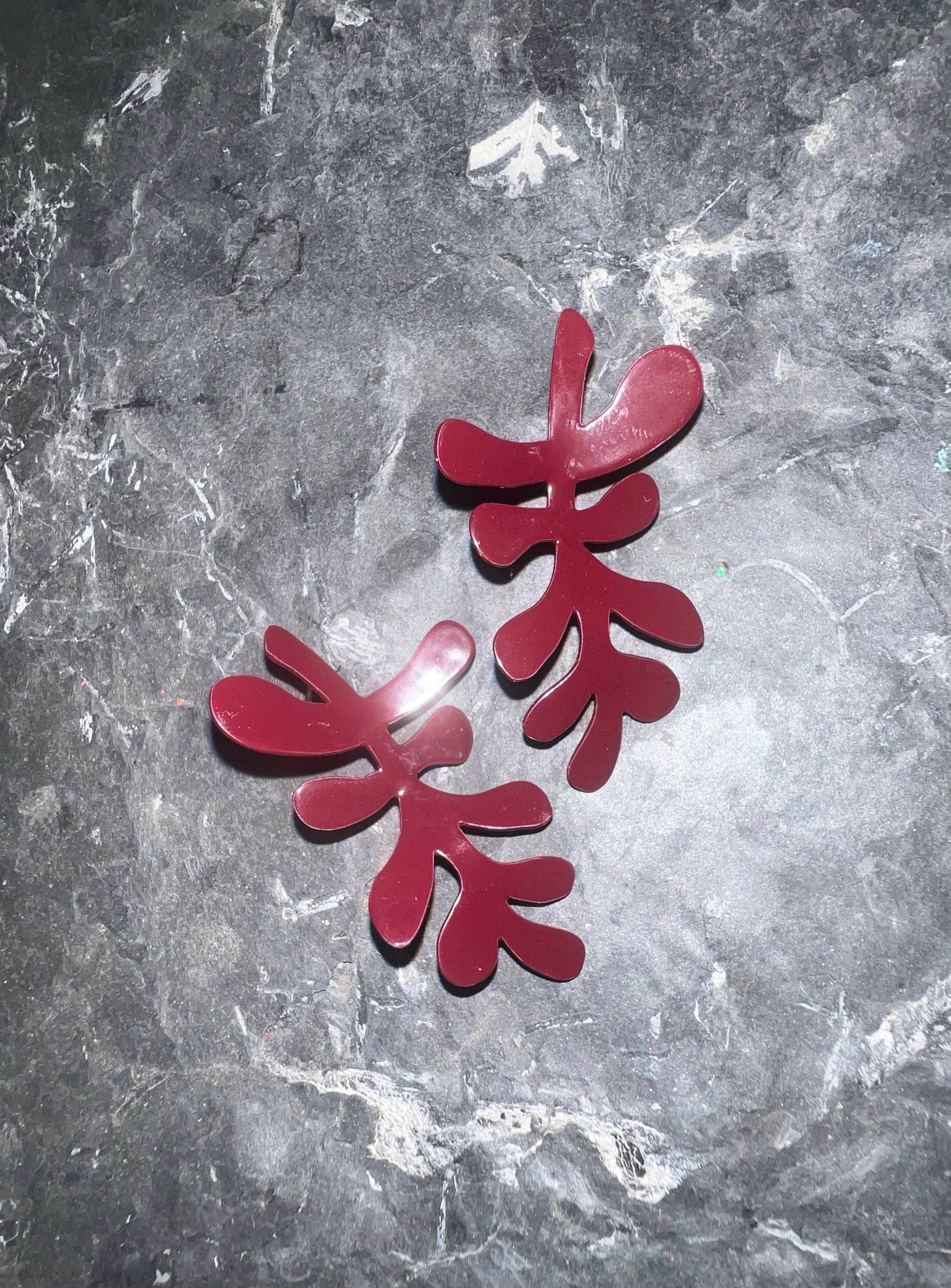 Each pair is hand-dipped polyester powder coated steel earrings with surgical stainless steel posts and sterling silver backings. The ferns are hand formed with a slight wave to them. Please note: they are not bendable.