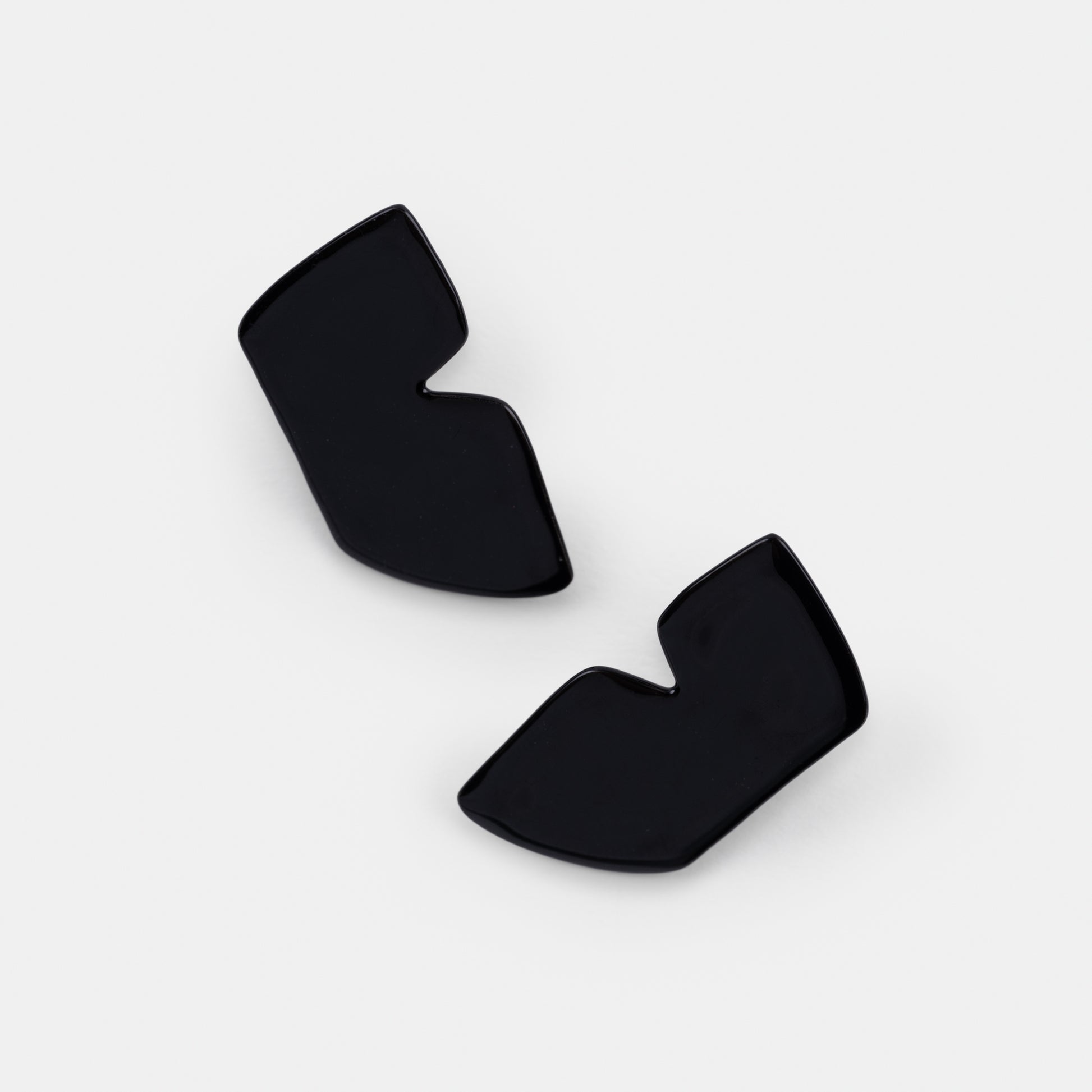 Ink black hand-dipped polyester powder coated steel earrings with surgical stainless steel posts and sterling silver backings in the medium size favorite form shape