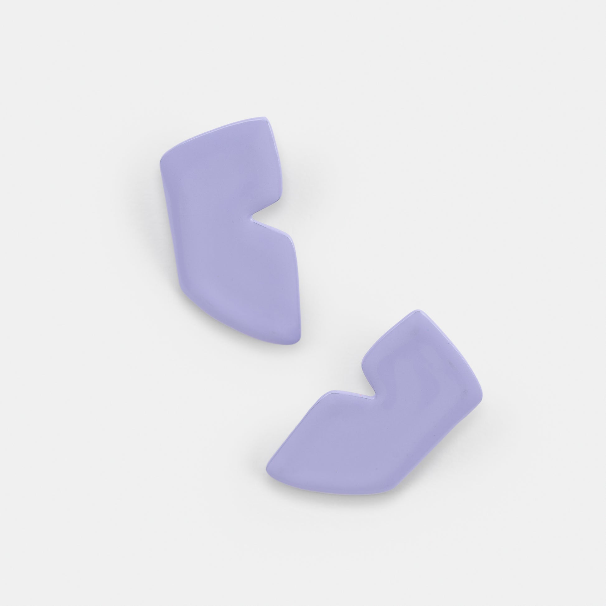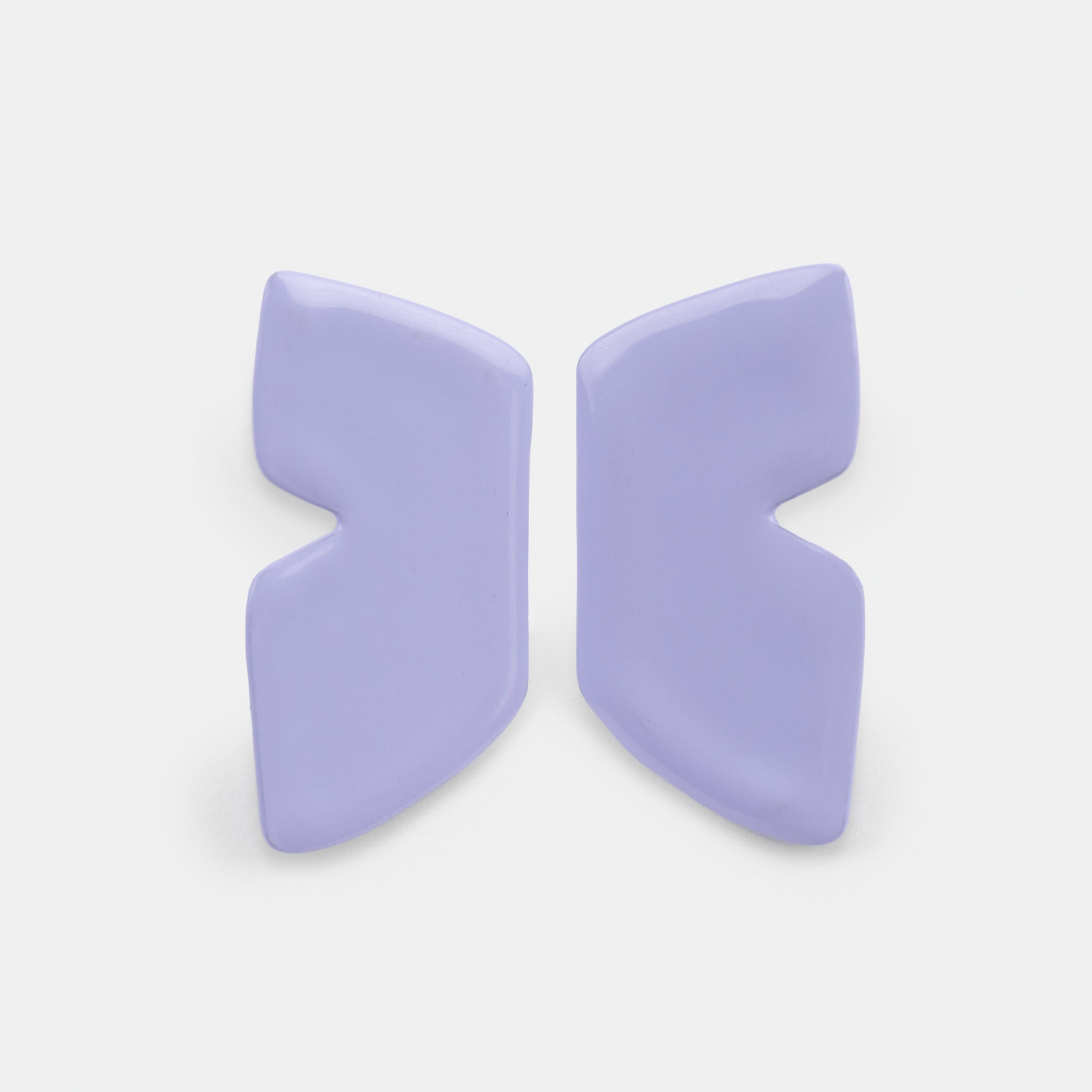 Lavender hand-dipped polyester powder coated steel earrings with surgical stainless steel posts and sterling silver backings in the medium size favorite form shape