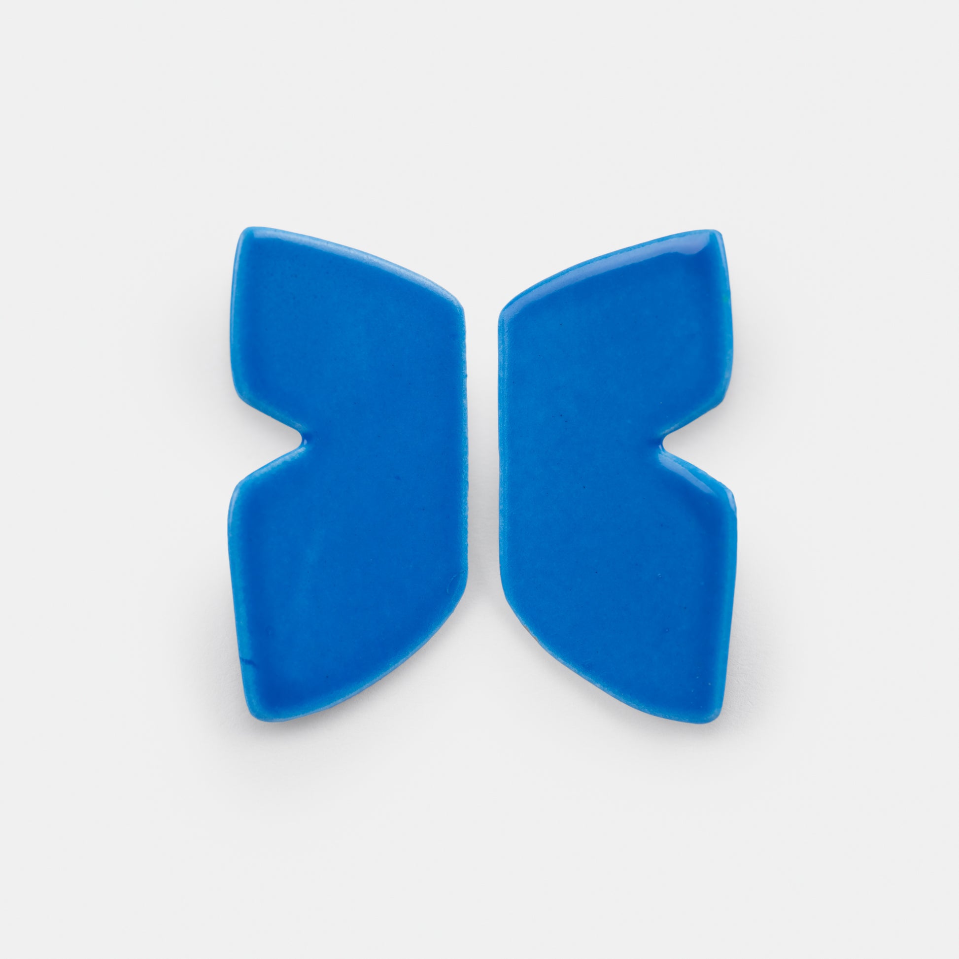 Velocity Blue hand-dipped polyester powder coated steel earrings with surgical stainless steel posts and sterling silver backings in the tiny size favorite form shape