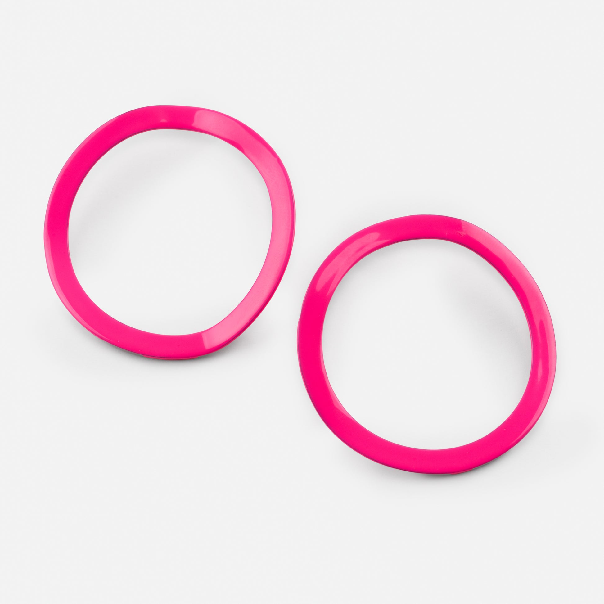 Polyester powder coated steel with surgical steel posts and nickel-free sterling bullet shape backings. This sassy pink powder coat is also UV-reactive!