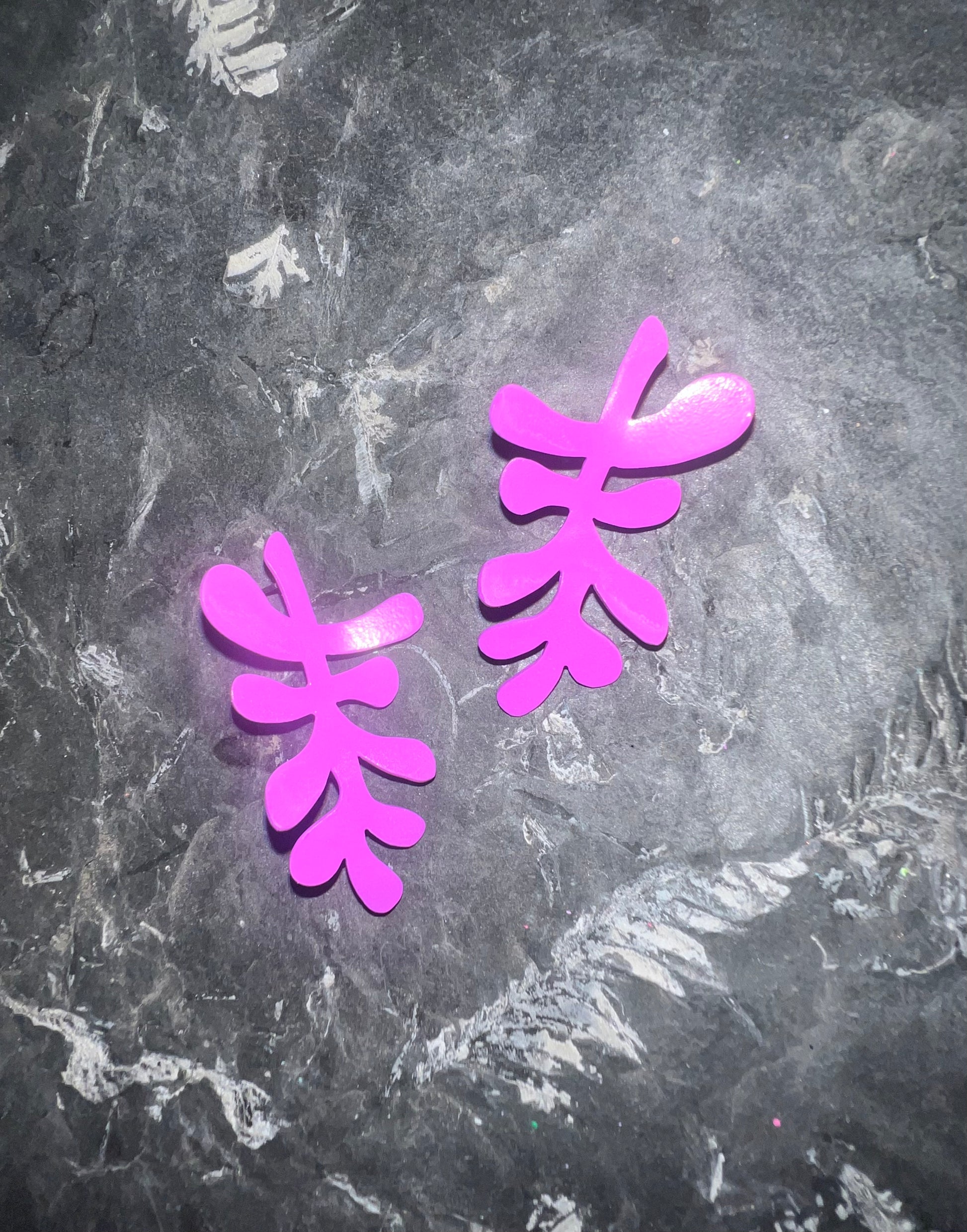 Each pair is hand-dipped polyester powder coated steel earrings with surgical stainless steel posts and sterling silver backings. The ferns are hand formed with a slight wave to them. Please note: they are not bendable.