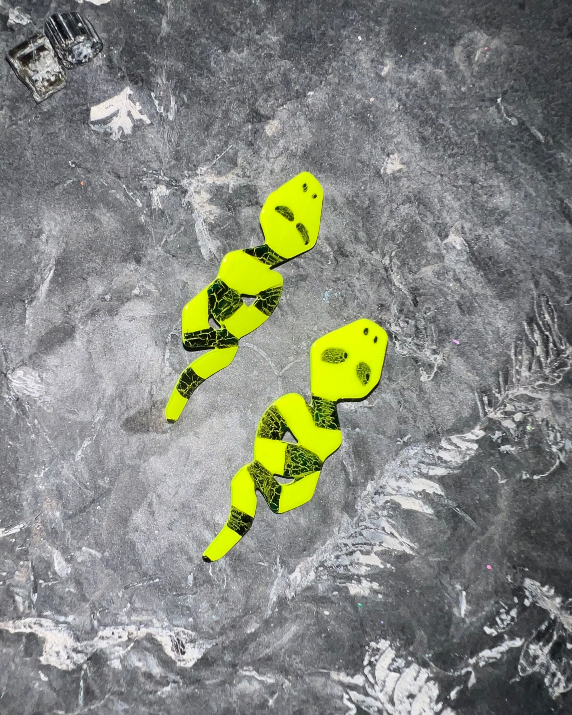 One of one of this friendly set! Each pair is hand-dipped and hand painted polyester powder coated steel earrings with surgical stainless steel posts and sterling silver backings.