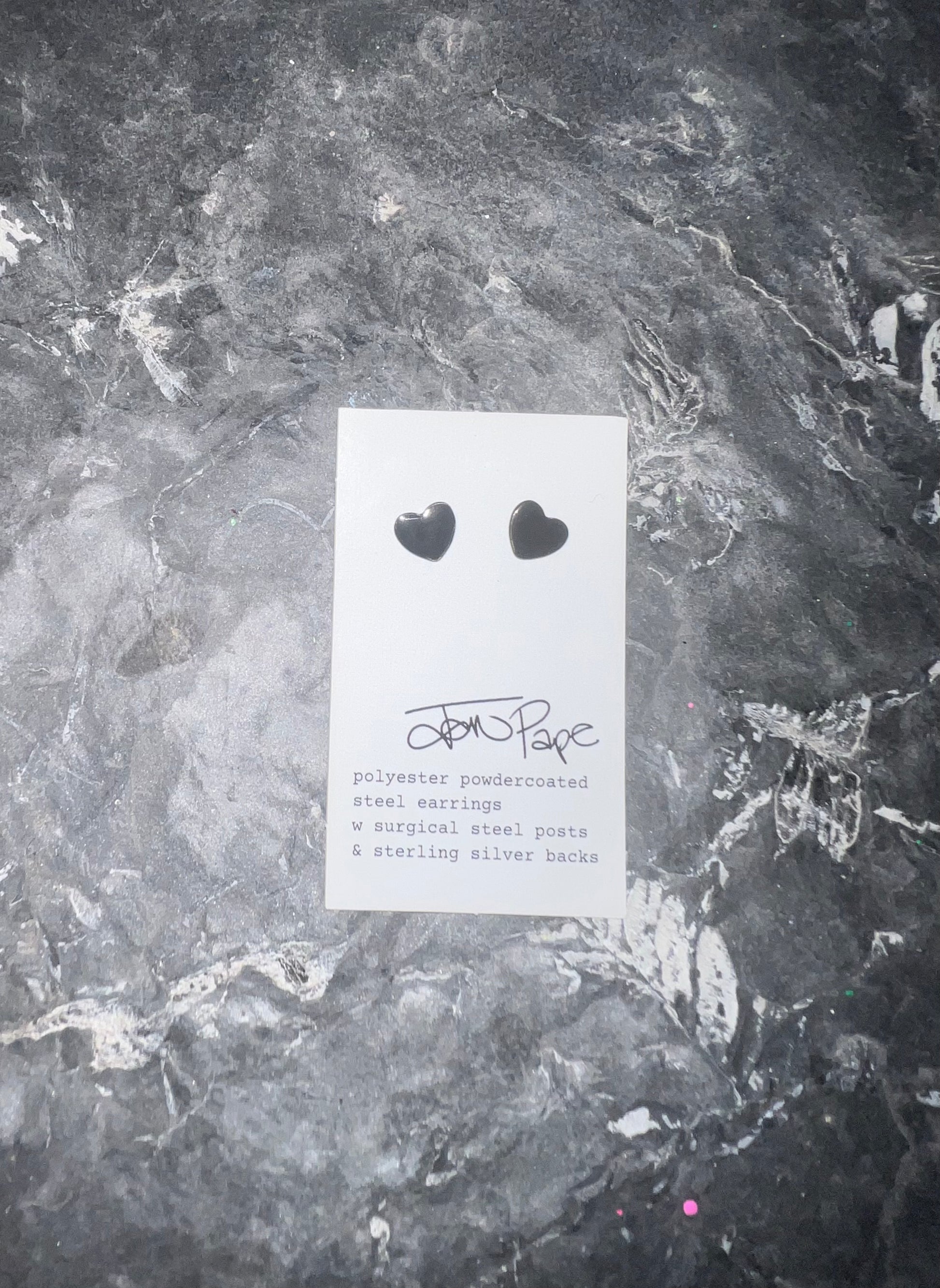 Hand-dipped polyester powder coated steel earrings with surgical stainless steel posts and sterling silver backings.