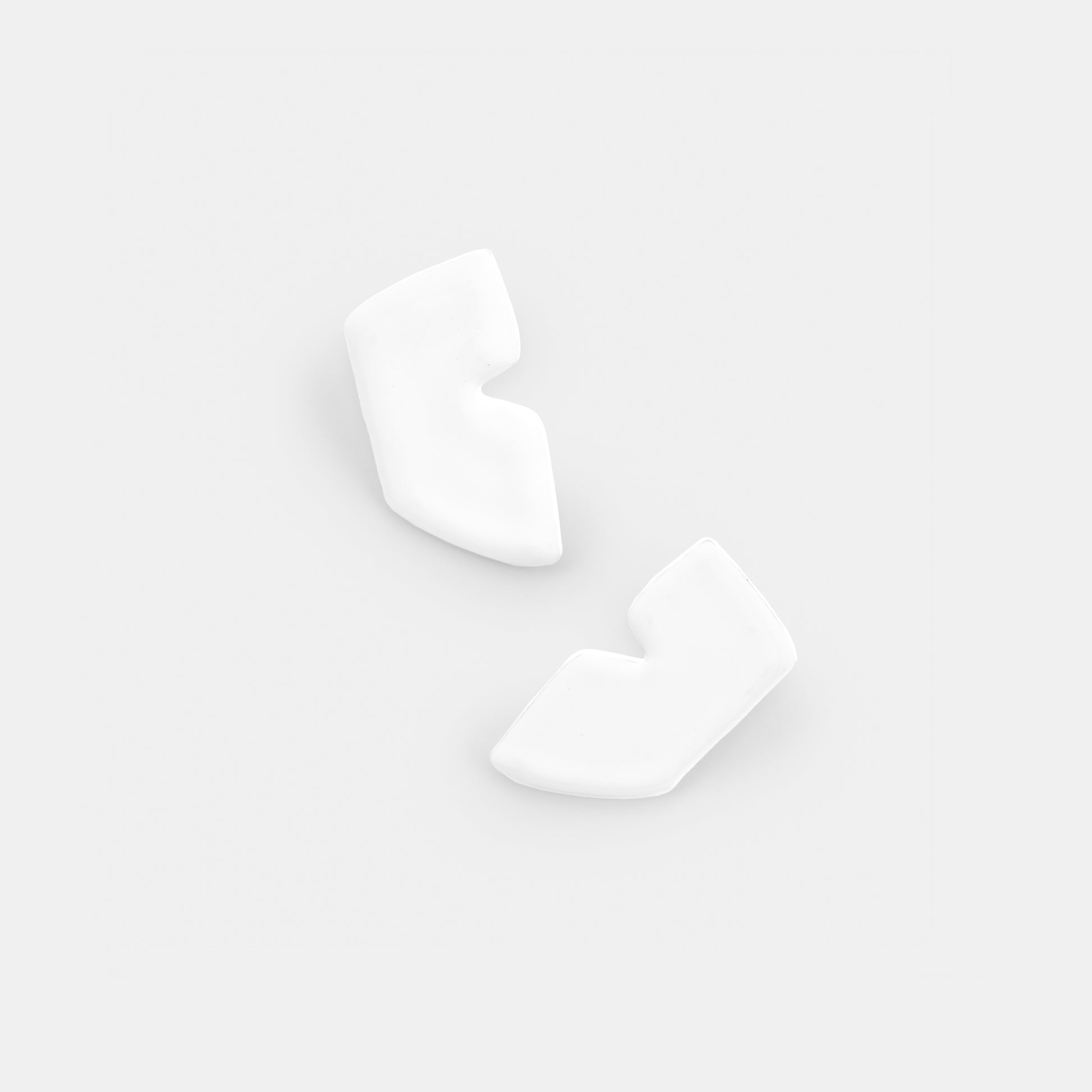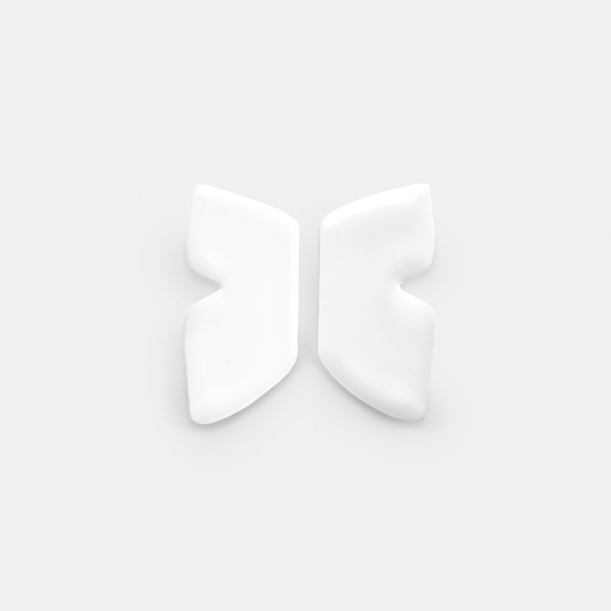 Cloud white hand-dipped polyester powder coated steel earrings with surgical stainless steel posts and sterling silver backings in the original size favorite form shape