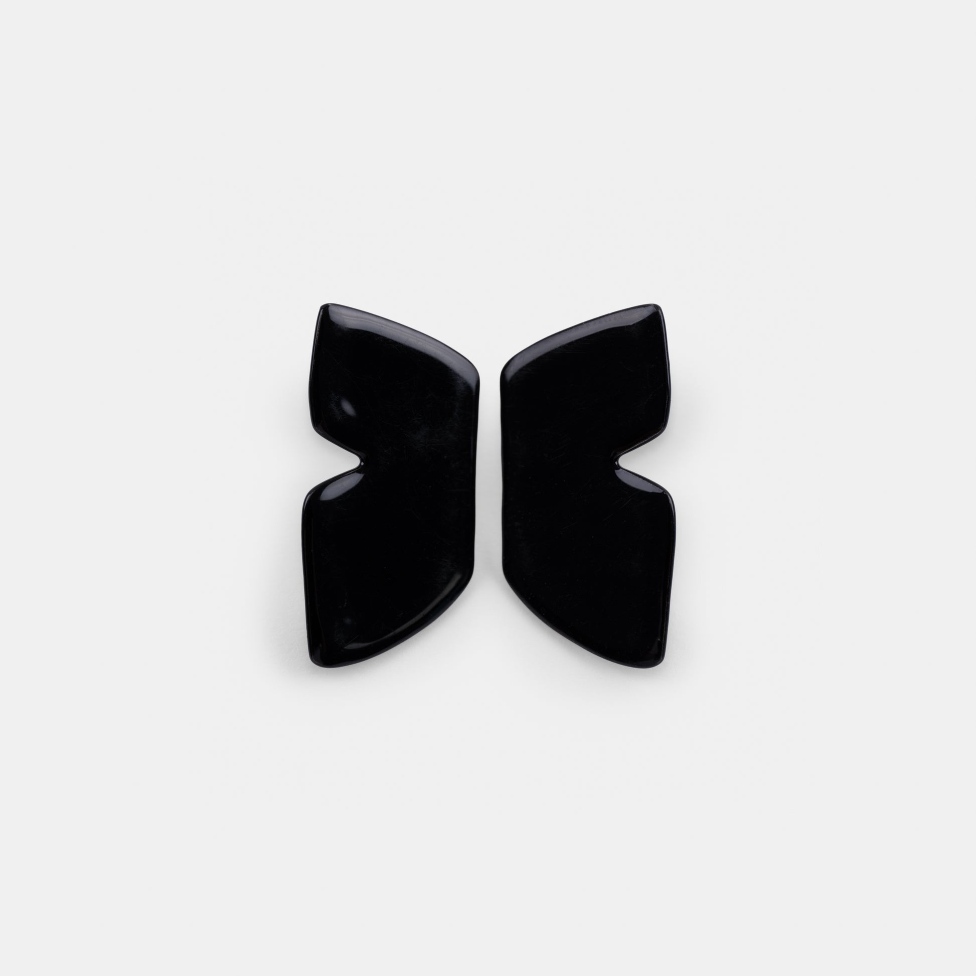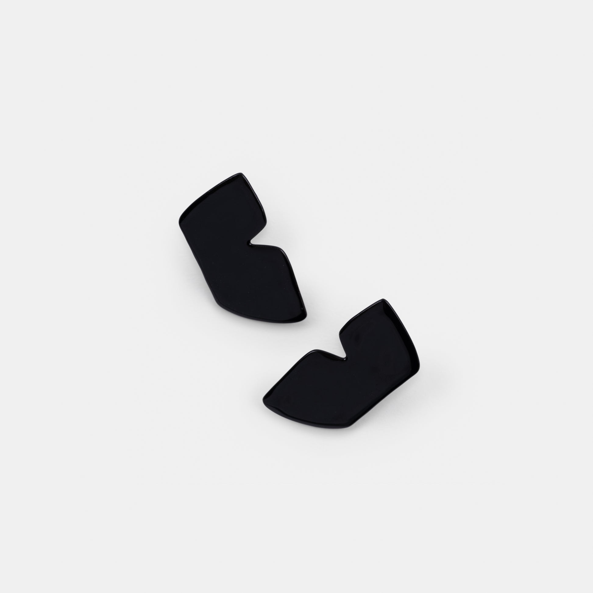 Ink black hand-dipped polyester powder coated steel earrings with surgical stainless steel posts and sterling silver backings in the tiny size favorite form shape